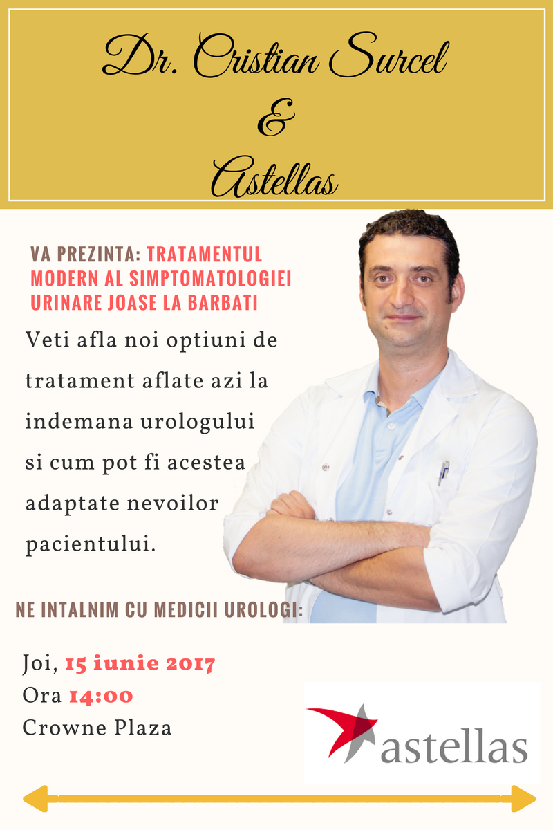 Detalii despre “Tratamentul modern al simptomatologiei urinare joase la bărbați” vor fi prezentate în cadrul simpozionului Astelass de joi, 15 iunie.
